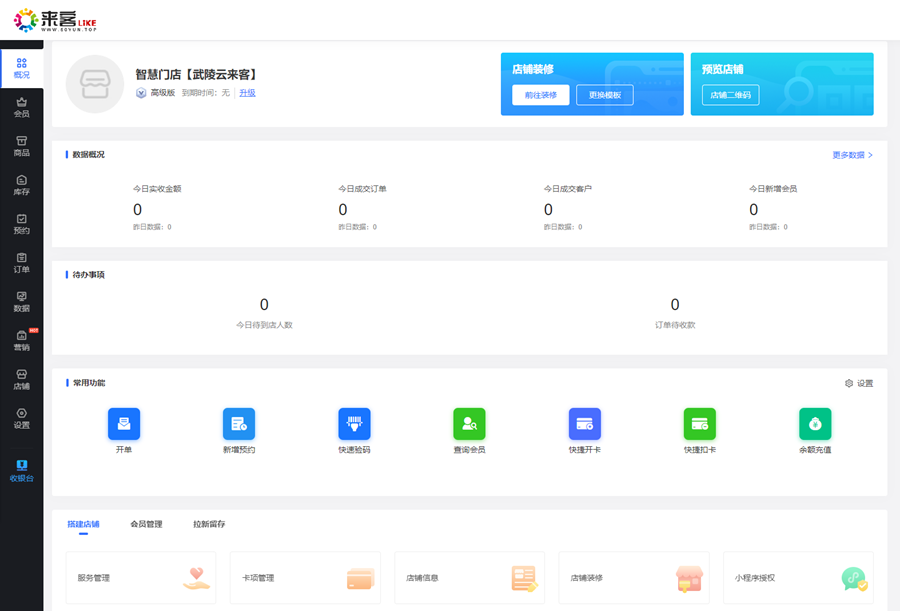 武陵云来客智慧门店系统是一套线下门店数字化运营系统,可以帮助实体服务型门店的商家实现拓客留客、裂变转介绍、服务预约或商品出售、会员和员工管理、数据统计等需求,提升门店经营效率;拥有优惠券、拼团、分销、储值积分等营销功能,玩法多样。会员端以小程序店铺形式展示,商家后台支持PC端和手机端操作,是非常方便的哦。